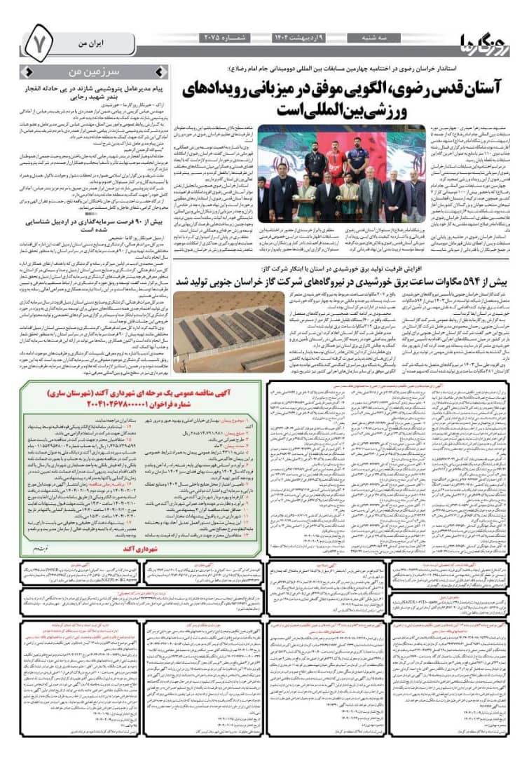 آغاز فرآیند مناقصه عمومی یک مرحله ای با موضوع پیمان بهسازی خیابان اصلی و بهبود عبور و مرور شهر آکند(اجرای رفیوژ میانی بلوار اصلی جاده دریا در محدوده شهر آکند) در سامانه ستاد ایران از تاریخ 1404/2/2 لغایت 1404/2/20که توضیحات بیشتر در آگهی پیوستی شرح داده شد.